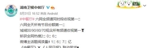 8月31日,节目组按照惯例分享了新一轮的收视战报,可以说各项数据都很耀眼,收视数据也是高居同时段第一,其实,对于这样的战报,网友本身就是一看了之。