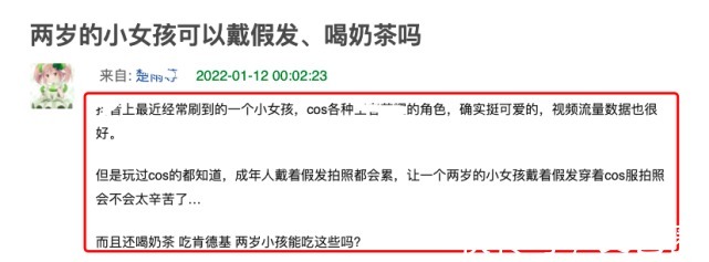 与此同时,网友也发现了其中的一些隐患。1月12日,有网友问道:“两岁的小女孩可以戴假发、喝奶茶吗?”