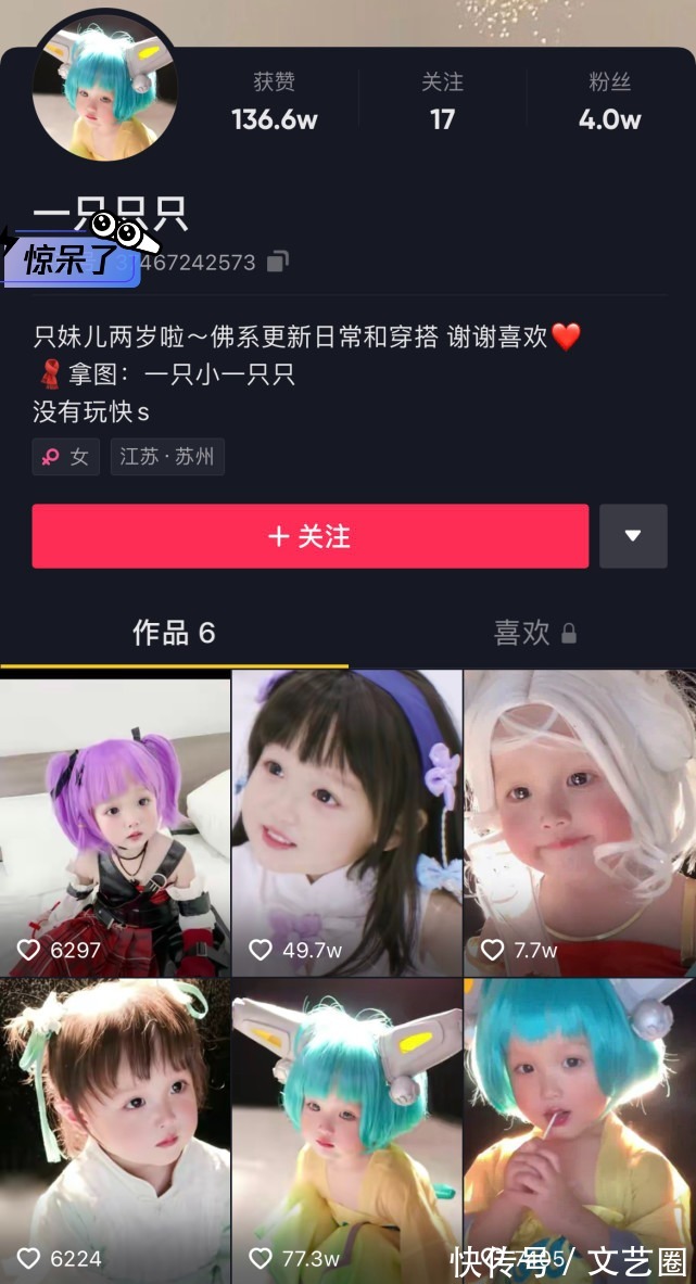 名为“一只只只”的小网红因为cos游戏上的角色走红网络。只只凭借可爱的长相和甜甜的笑容圈了不少粉,仅仅发布了6条视频就已经收获了4万粉丝,而且视频的流量数据很好,足以见得网友对只只的喜爱。