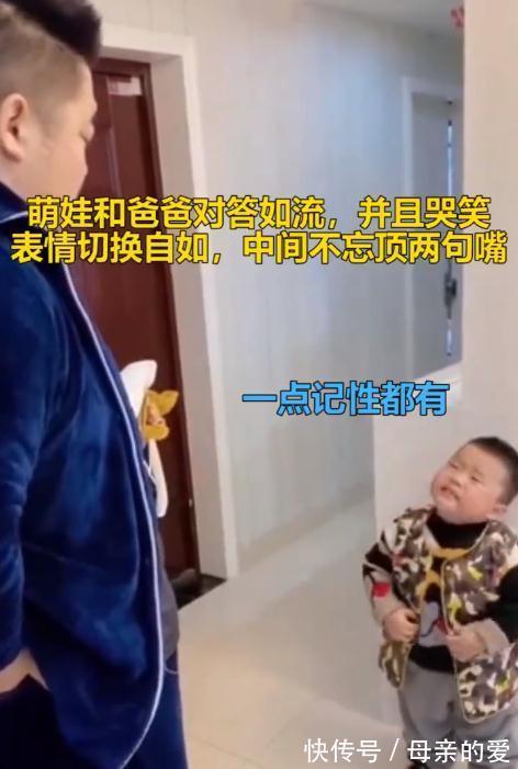 面对萌娃逻辑满分的辩论,切换自如的哭笑表情,原本生气准备批评萌娃的爸爸也被打败了,屡屡笑场,瞬间落了下风,最终这场没有硝烟的“父子之战”,以爸爸的完败告终。
