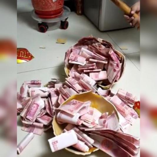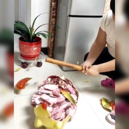 压岁钱|“最壕存钱罐”火了,孩子用擀面杖敲开那刻,网友直呼:大户人家