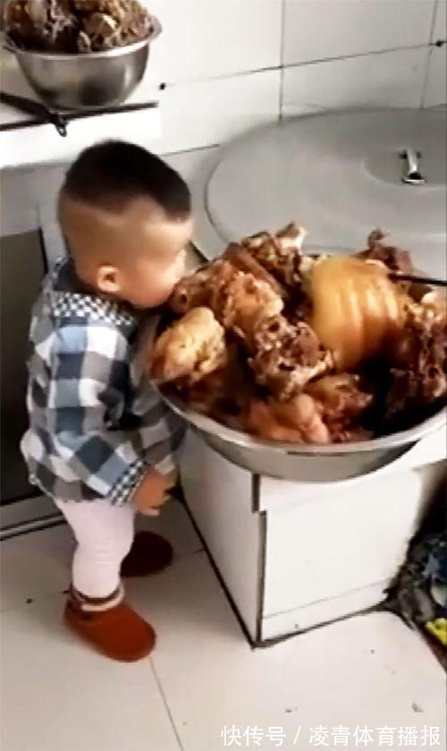 小孩子的天性就是爱吃爱玩,如果你用好吃的引诱她们,她们是完全没有抵抗力的,电视上有多少孩子是让坏人用好吃的骗走的,所以说孩子真的对美食没有一点抵抗力,婴儿哇哇大哭的时候给个安抚奶嘴就会不哭了,二三岁的孩子看到好吃的也会马上停止哭泣,这就是美食在孩子面前的吸引力。最近网上有个萌宝宝实在太可爱了,今天分享给大家。照片中宝宝看着一大盆猪肉垂涎欲滴,这一盆猪肉放在厨房的灶台上,和宝宝几乎一般高,宝宝直接把脸趴在盆上,正在津津有味的啃,虽然啃不下来,但看着他趴在一盆猪肉上的满足样,让人觉得非常的可爱。