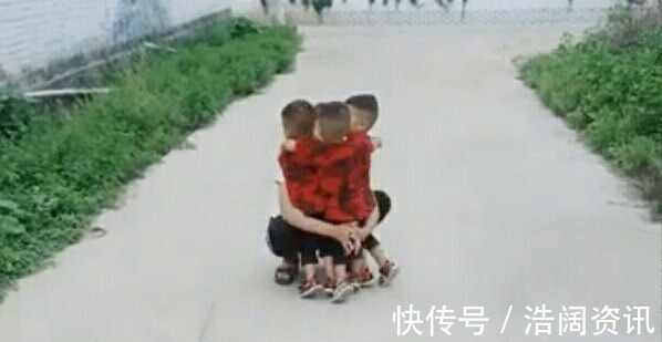 只见小敏蹲了下来,叫三胞胎兄弟排成一列站在自己面前,她双手搂住三个孩子,用了一把力就把三个孩子抱了起来,在妈妈怀抱了的三个孩子都笑起来了。