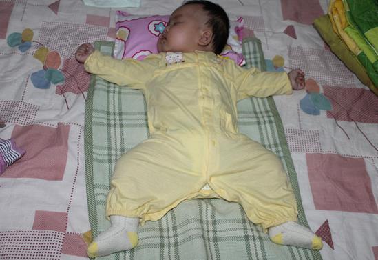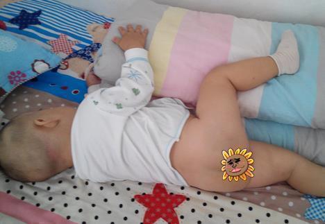 9、仰卧的宝宝:双脚交叉是心理和身体平衡的信号,这种睡眠方式的宝宝多半性格活泼,爱动爱跳。
