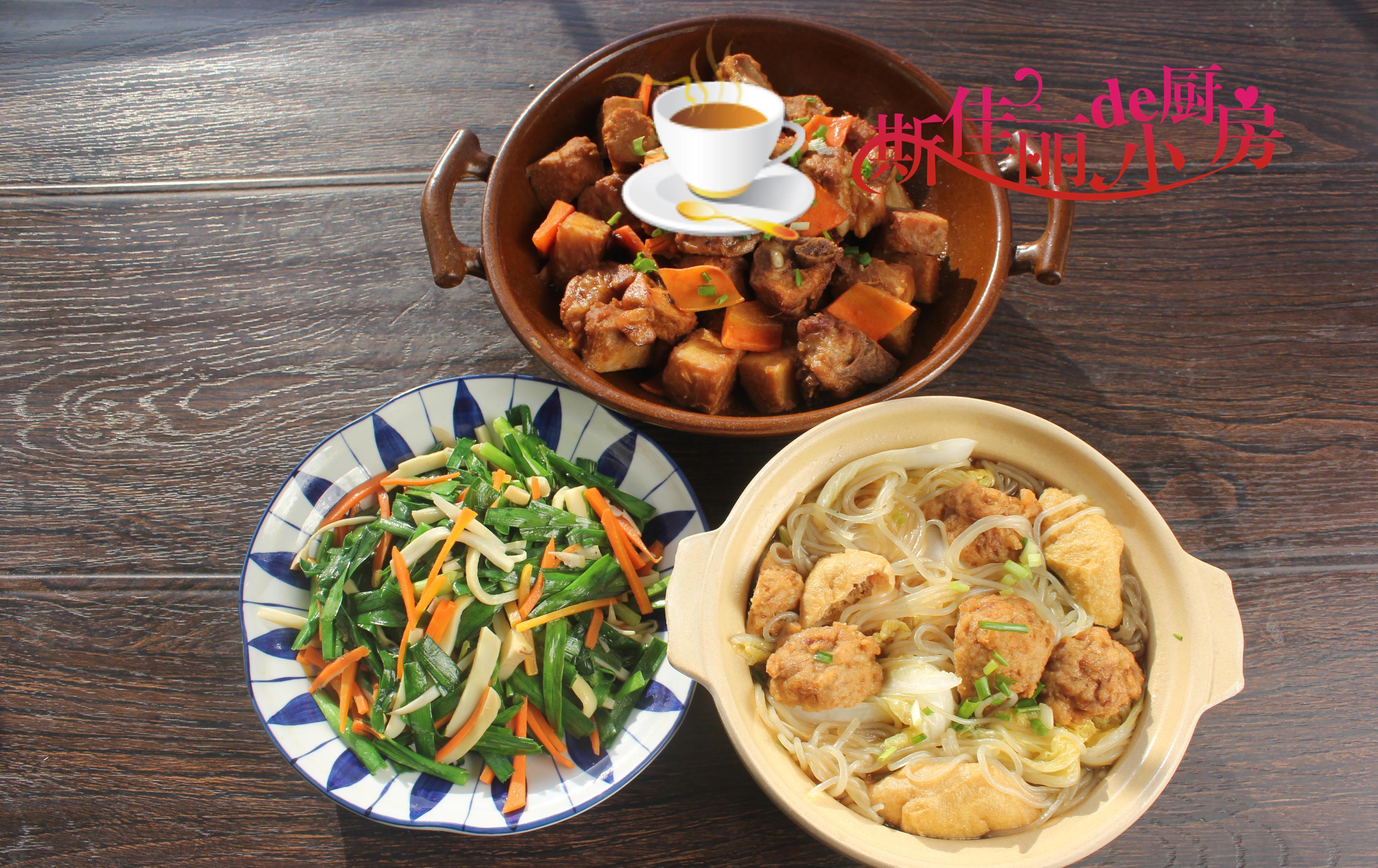 【周四荔浦芋头炖排骨VS豆腐泡娃娃菜粉丝炖肉丸VS胡萝卜杏鲍菇炒韭菜】冬天是进补的好时节,排骨一直是儿子喜欢的食材,它比瘦肉香,比五花肉少油腻,口感鲜嫩又有嚼劲,多吃排骨既能强健筋骨,增强体力,补充钙质,是冬季进补不错的选择。 今天就用它搭配着荔浦芋头一起来炖煮,滋补又营养,鲜香又味美,芋头吸收了排骨的肉汁香味变得软绵咸香特别好吃,比排骨还抢手呢。 家里还有妈妈送来的肉丸,将它和豆腐泡,粉丝和娃娃菜炖成一锅,鲜美又营养,即可是菜也可做主食。 餐桌上青菜不能少,一道素炒三丝,是用韭菜,杏鲍菇和胡萝卜丝三种食材制作而成, 低脂又饱腹,有利于清肠助消化哟。
