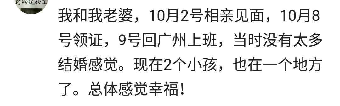 真羡慕你们这些闪婚大神,见面就确定关系,确定关系就直接见爸妈,然后直接结婚,真的很快,也挺羡慕你们的。祝福所有爱情和婚姻相亲相爱。
