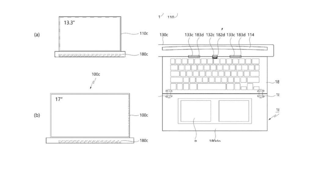 LG 的最新专利名为“具有可滚动显示结构的便携式电子设备”,描述了一种全新的笔记本电脑外形,包括一个 17 英寸显示屏,该显示屏可以像卷尺一样拉出或收起,显示屏可以展开到...