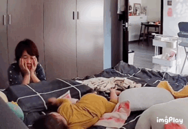 宝宝睡午觉醒来, 照顾孩子的保姆阿姨坐在床边温柔地看着她。 宝宝扭头看见阿姨, 立马笑了起来,翻身打滚, 翻进阿姨怀里伸懒腰。 宝妈说:由于家中的床还没有安装护栏, 宝宝...