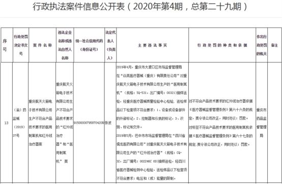对不符合产品技术要求的红外线治疗器,重庆市药品监督管理局依据《医疗器械监督管理条例》第六十六条的规定,责令该公司改正,同时处以罚款;对标签不符合产品技术要求的医用...