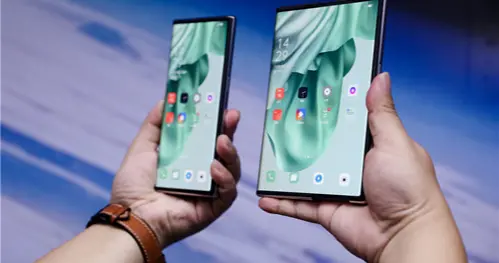 这块卷轴屏可以如画卷般自由伸缩,用户可根据实际需求调整屏幕的尺寸。而且拉伸和收回的方式非常简单,只需要在指纹解锁按键处上滑一下,便能让手机一秒变平板;如果想要收回...