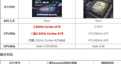 同样,三星Exynos 1080同样采用的是5nm先进制程工艺,该处理器在结构上集成了ARM最新的Cortex-A78 CPU + Mali-G78 GPU 核心。有朋友可能不知道,Mail-G78架构被ARM称作目前最强移动GPU,整体性能表...
