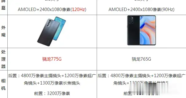 OPPOReno4pro: 有着一块6.5英寸的AMOLED屏幕支持着2400x1080像素的分辨率并且是支持着90Hz的高刷的。 小结:两款手机都是有着相同大小的屏幕并且都是有着高刷,但是reno5配有的120Hz刷新率绝...