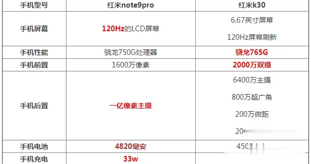 为用户带来更好的手机性能体验,带来最优的手机性价比 3、拍照方面 红米note9pro:前置1600万,后置1亿像素主摄,为用户带来更好的手机拍照模式 红米k30:前置2000万双摄,后置6400万...